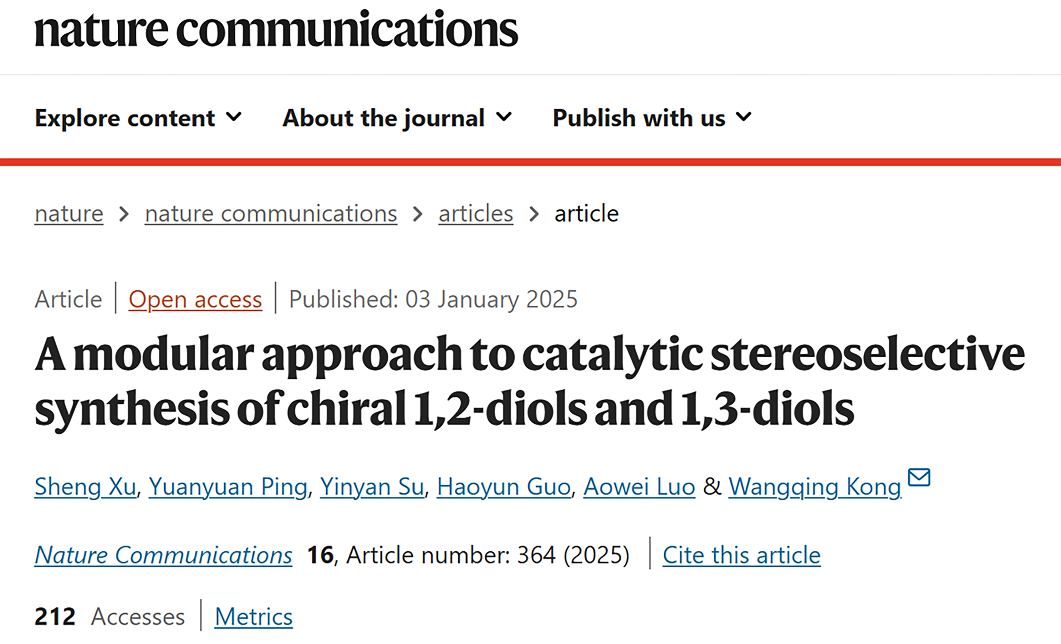 近日,国际综合性期刊《自然•通讯》(Nature Communications)在线发表威尼斯人澳门-澳门威尼斯娱乐城 教授孔望清课题组手性1, n-二醇模块化合成领域取得最新研究成果。论文题目为“A modular approach to catalytic stereoselective synthesis of chiral 1,2-diols and 1,3-diols”。威尼斯人澳门 博士生许盛、特聘副研究员平媛媛和本科生苏胤延为论文的共同第一作者,孔望清为通讯作者,威尼斯人澳门-澳门威尼斯娱乐城 为第一署名单位。