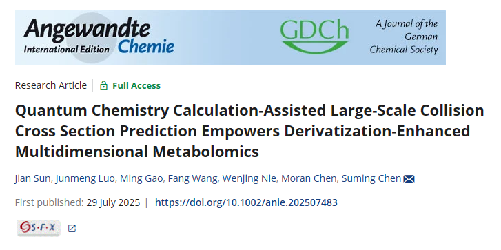 近日,国际权威学术期刊 Angew. Chem. Int. Ed. (《德国应用化学》)在线发表了威尼斯人澳门 陈素明教授课题组在异构体水平质谱分析领域的最新研究成果。论文题为:“Quantum Chemistry Calculation-Assisted Large-Scale Collision Cross Section Prediction Empowers Derivatization-Enhanced Multidimensional Metabolomics”(量子化学计算辅助的大规模碰撞横截面预测技术助力衍生物增强的多维代谢组学)。威尼斯人澳门 研究生孙健、罗俊萌为论文共同第一作者,陈素明教授为独立通讯作者,武汉大学为论文唯一署名单位。